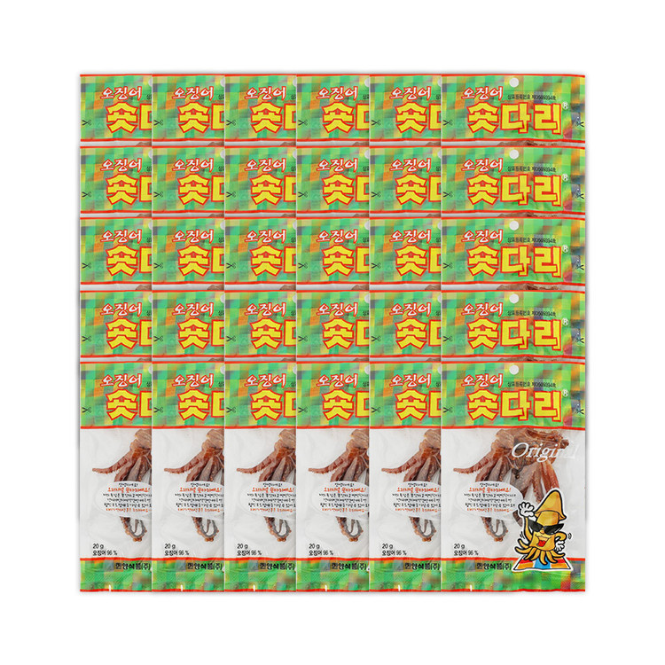 PC방,편의점,휴게소에서 즐겨먹었던 추억의 과자 오징어 숏다리에요. 입이 심심할 때 간편하게 뜯고 바로 즐길 수 있는 주전부리로 극장에서 영화볼 때도 좋고 야외에 캠핑이나 여행, 나들이 나갈 때도 챙겨나가면 좋은 효자 아이템이랍니다!