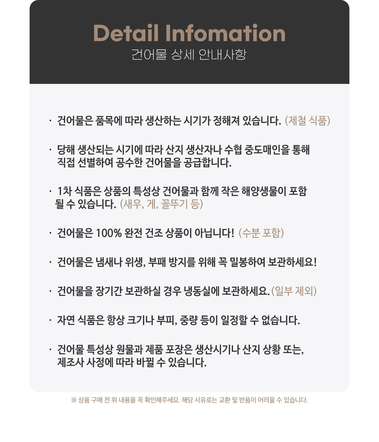 • 재판매가 불가능한 상품은 특성상 단순 변심이나 주문에 착오있을 경우 교환 및 반품이 어려운 점 양해 부탁드립니다.