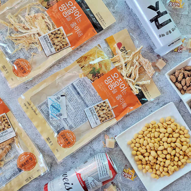 조미오징어100%[오징어(페루산)86.5%,설탕,가공버터(우유),땅콩버터(중국산,땅콩99.4%)2.8%,정제소금(국산),D-소비톨,L-글루탐산나트륨(향미증진제),구연산,스테비텐소프트(덱스트린,효소처리스테비아),호박산이나트륨,메타인산나트륨,글리신,DL-알라닌,D-소비톨액]
