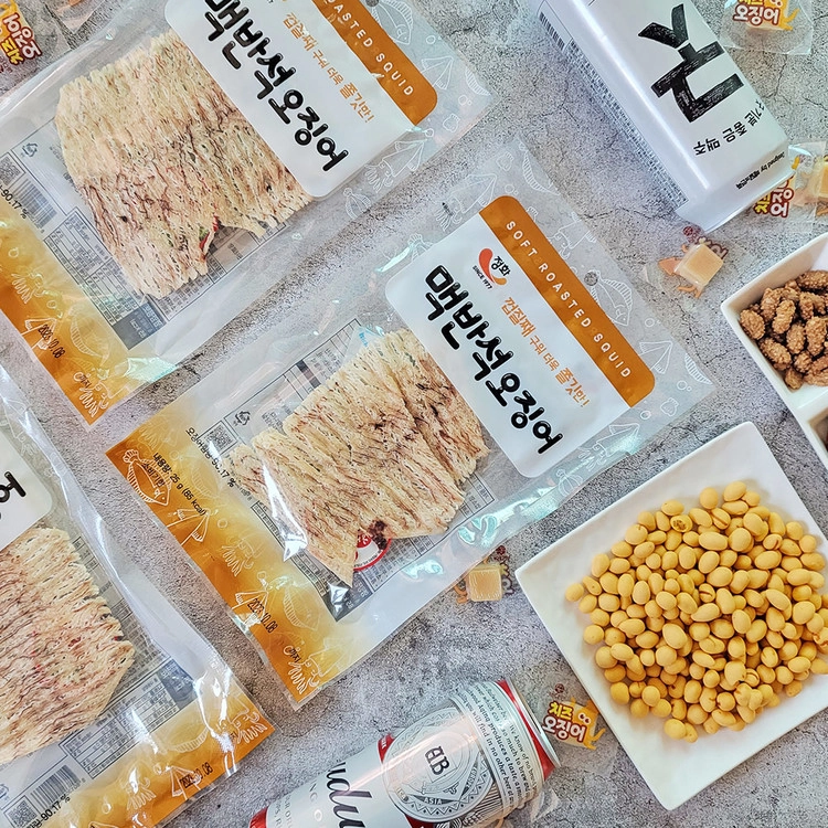 오징어(외국산:페루,칠레,중국 등)90.17%,설탕,정제소금(국산),구연산,L-글루탐산나트륨(향미증진제),DL-알라닌,글리신,스테비텐소프트(덱스트린,효소처리스테비아),D-소비톨,소브산칼륨(보존료),메타인산나트륨,호박산이나트륨,빙초산,D-소비톨액) * 오징어 함유